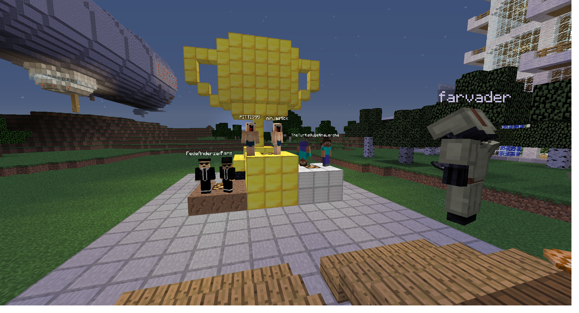 • Kampene udkæmpes med træ sværd og kun træ sværd. (Ingen bedre sværd, buer, spande med lava eller lign.)*