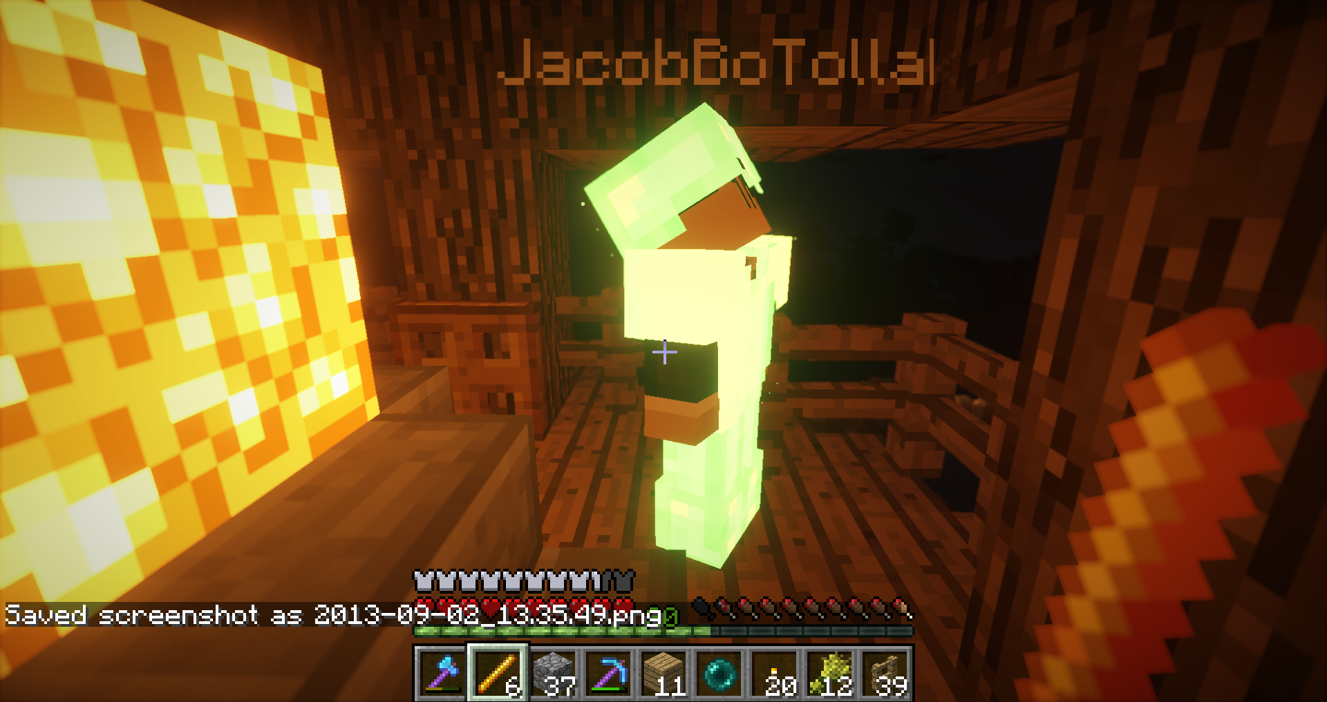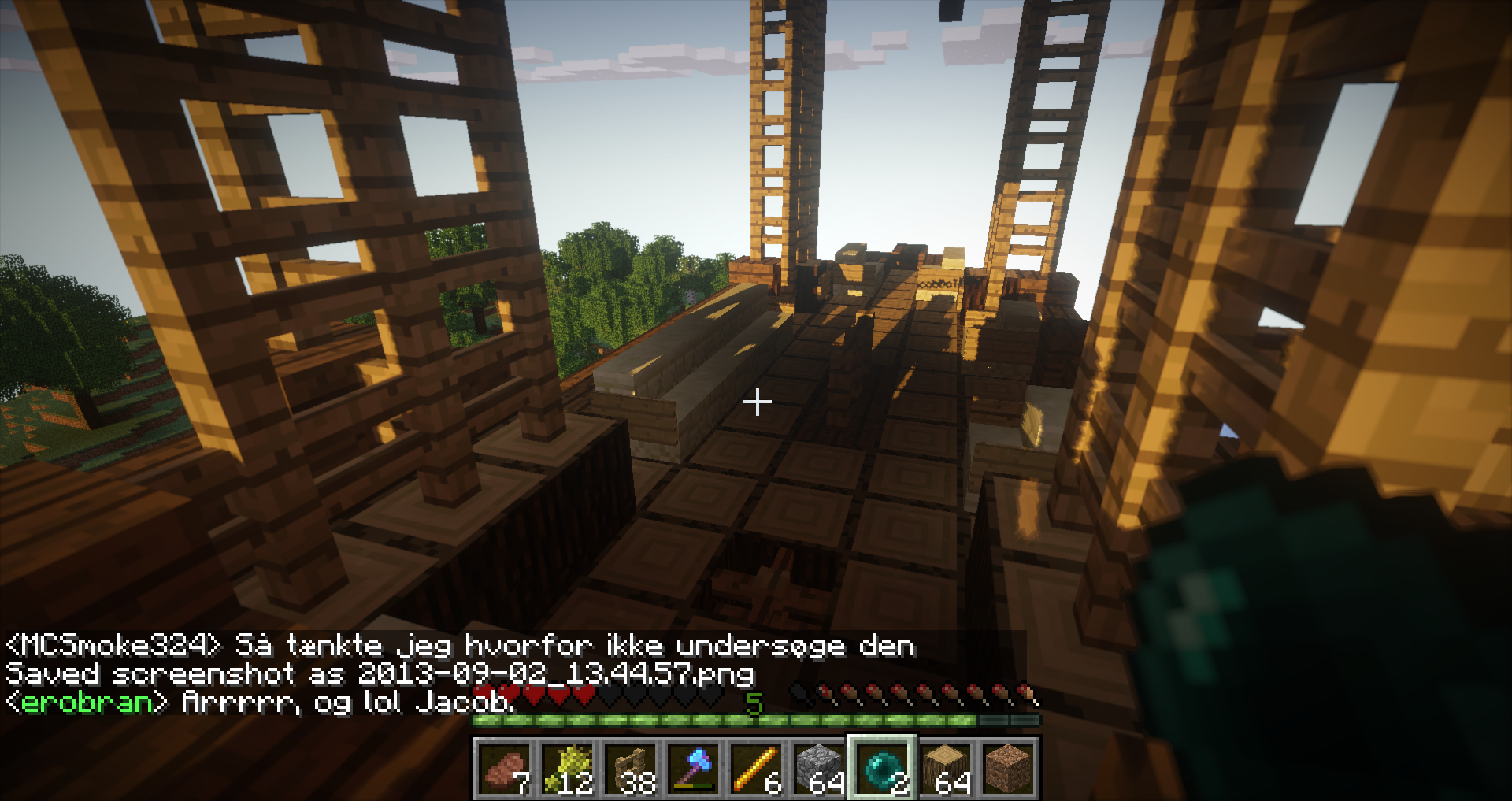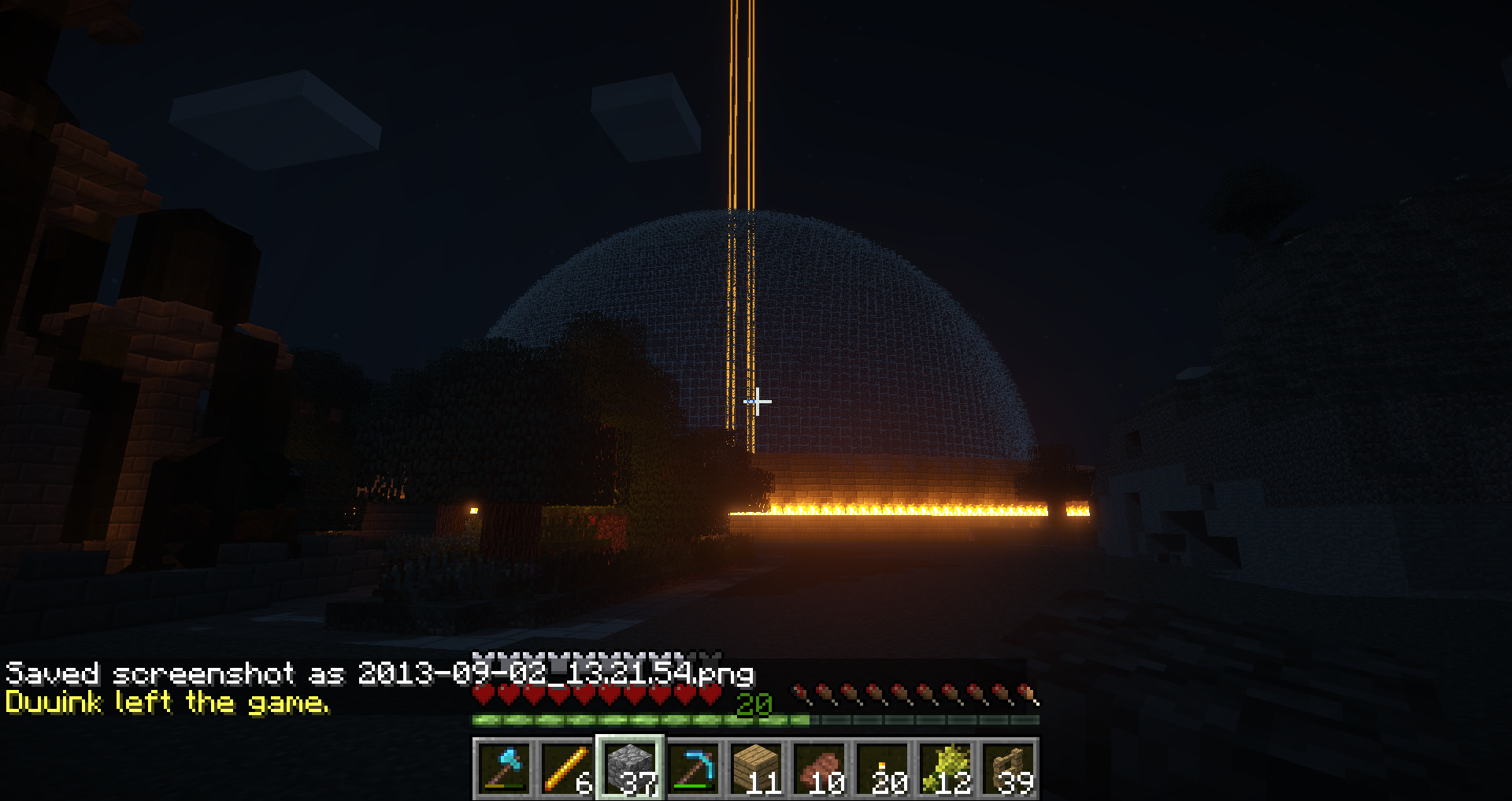 Jeg bruge MCchat på min telefon på det tidspunkt, og homede til lageret fra Nether.... Og stod så der i brand indtil jeg loggede på med min pc en god time efter.