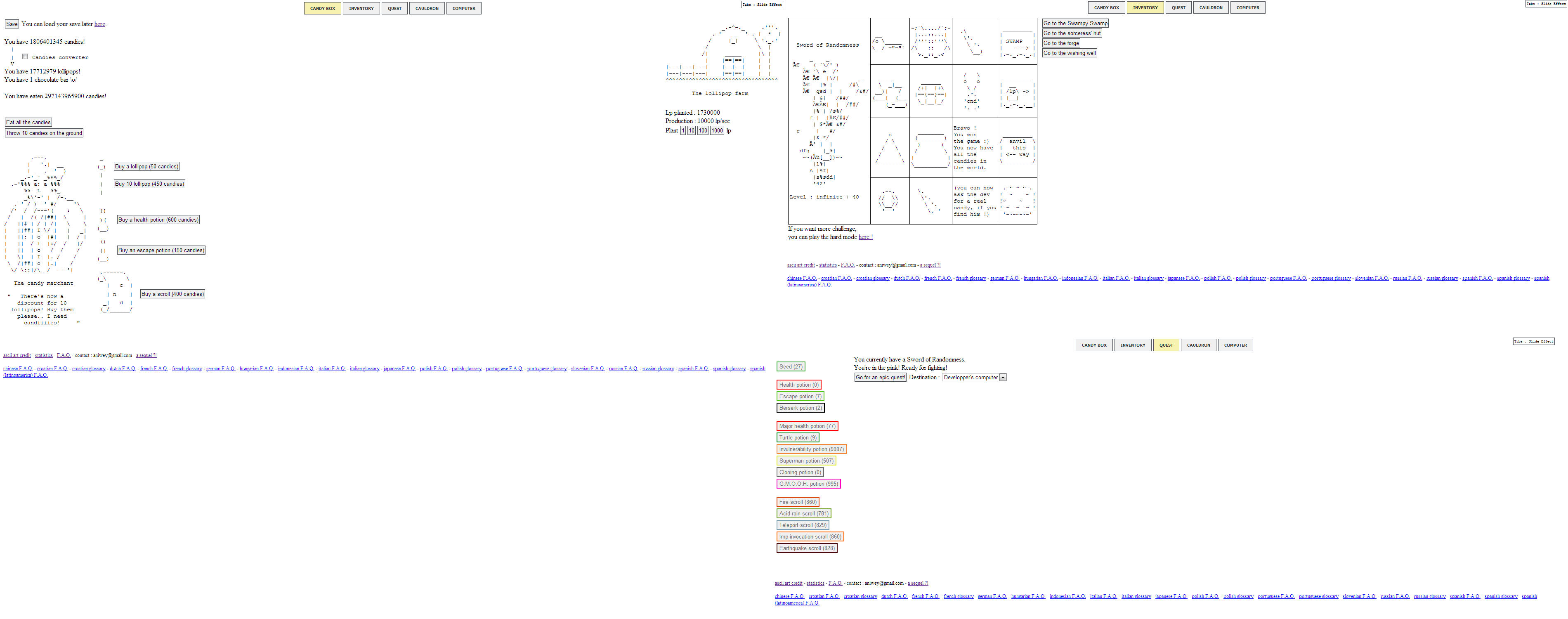 Ja, jeg har godt set at jeg mangler et item, men jeg tager lige en pause fra Candy shoppenSogic wrote:Jamen så får i da også alt mit, har lagt quest tabben med som i kan se alle mine inv potions xDPars wrote: