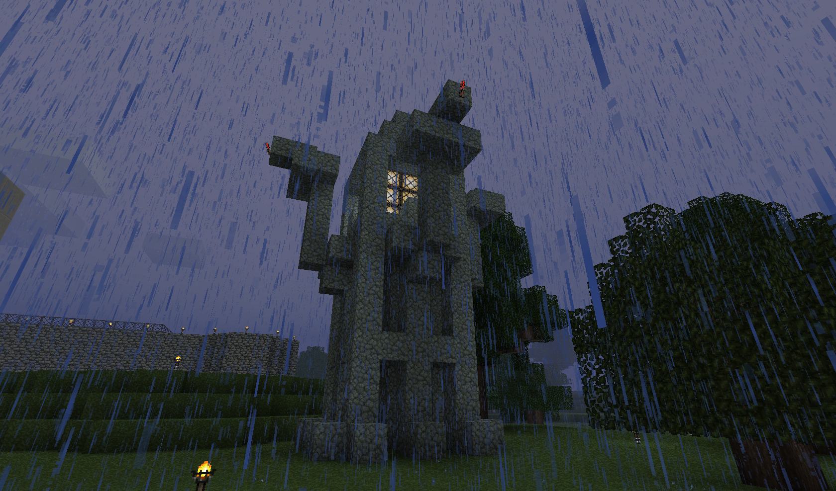 Nu vi snakker om tårne, der bliver en masse runde tårne, Og gang broer mellem dem, Alpha Bliver indgang (der bliver kun indgang i et af tårnene, så du kan gå på broerne For at komme hen til de andre tårne, dette tårn er 20 i radius. Og det er lavet af cobble, og vand kommer til at flyde ned af væggene (ydersiden). Beta bliver farms, flere etager. Væggene bliver af glas. der kommer mushroom farm (automatisk), Weed (ser om det kan blive automatisk