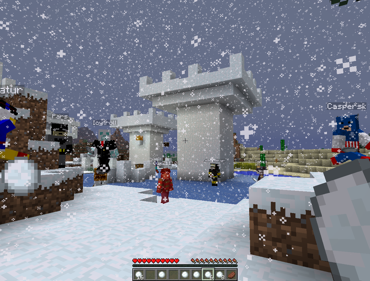 Efter opførelse af sneborge i smagfuld arkitektur, af autodidakt arkitekt CasperSK, og indsamling af snebolde i The Islanders Snefarm, blev kampen skudt igang.