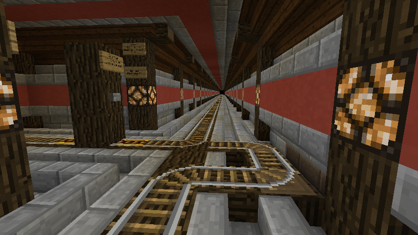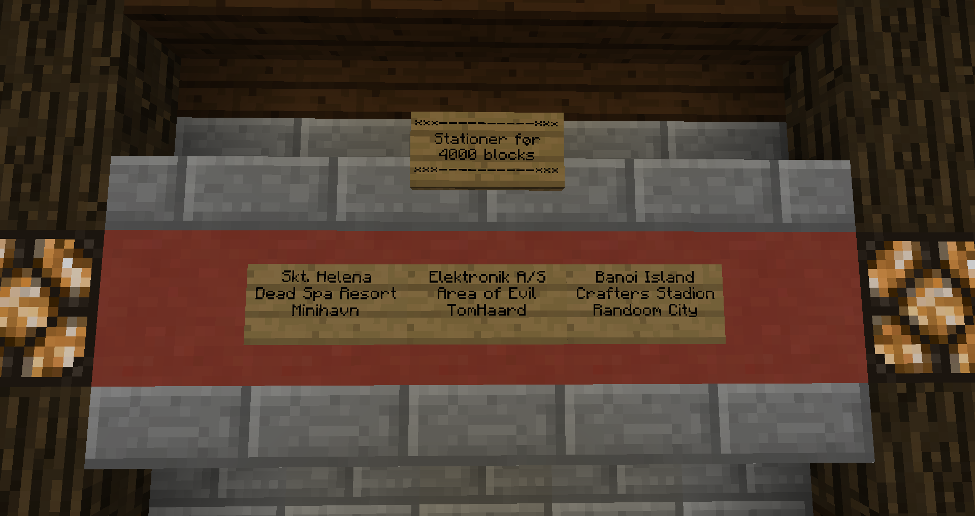 Ved hver portalsektion ude på hovedlinien er der opsat skilte der viser hvilke stationer der kan køres til inden næste portal 2000 blocks længere ude.